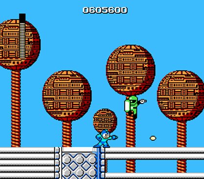 To get to the robot masters, you must go through very treacherous stages where quick reflexes and awareness is key to passing every stage. Longer stages will have more turrets while, shorter stages have the unnecessarily hard platforming. Jumping to plat forms the size of your character is a small challenge. When jumping to plat forms and having to shoot enemies in the air is hard. Jumping to moving platforms that drop you at a certain point multiple times at high speeds are harder, and JUMPING TO FLYING PLATFORMS WITH NO PATTERNS THAT SHOOT YOU, WHILE ENEMIES ARE KNOCKIG YOU INTO THAT OBVIOUS BOTTOMLESS PIT BELLOW IS THE HARRRGGGHH-dest.